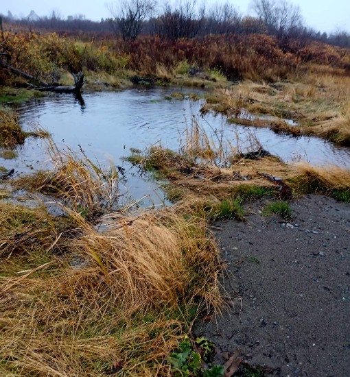 A drained swamp is good for nothing, it’s that simple. Without an influx of refreshing rains, it becomes a quagmire of rot, death, starvation, and dissolution. More specifically, the death of a swamp, by either drought or human intrusion causes increased flooding, which can be disastrous to coastal communities already in danger of rising sea levels, erosion, and a loss of biodiversity—that is: toads, shrews, moles, salamanders, skunks, frogs, and bugs, bugs, bugs, along with all the beautiful birds and amphibians that rely on them for a hearty meal. We are now getting the rains that have been too long coming and it is good. This alder swamp on the coast of Downeast Maine, abutting Mowry Beach is full to the brim and running over in delight. This is a gift that sometimes goes unnoticed as we whine about the leaks in our roofs, our soggy shoes, and the mud—everywhere the mud.