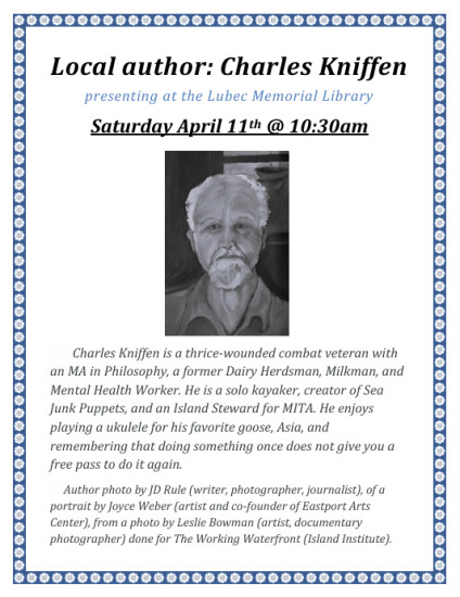 Charles Kniffen is a thrice-wounded combat veteran with an MA in Philosophy, a former Dairy Herdsman, Milkman, and Mental Health Worker. He is a solo kayaker, creator of Sea Junk Puppets, and an Island Steward for MITA. He enjoys playing a ukulele for his favorite goose, Asia, and remembering that doing something once does not give you a free pass to do it again.
